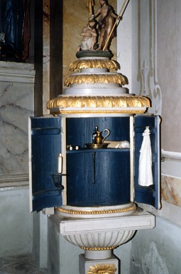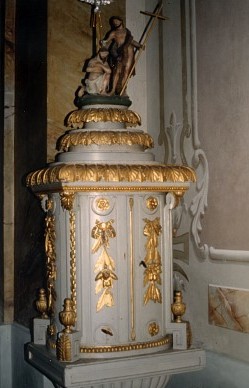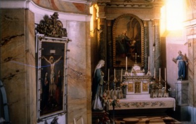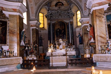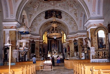 Der Kirchen- und Altarraum der katholischen Kirche in Kernei